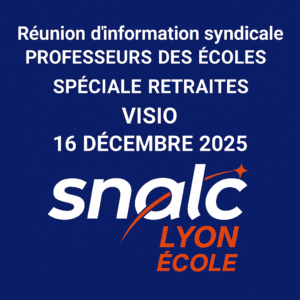 Le SNALC-Lyon, en collaboration avec l’équipe premier degré du SNALC-Grenoble, vous propose une réunion d’information syndicale en visioconférence (sur ZOOM) pour vous transmettre les points essentiels à connaitre sur la retraite.